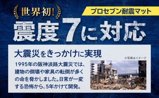 1995年、阪神淡路大震災が日本を襲い、多くの人が突然の自然の猛威にさらされました。家屋の倒壊を免れても、転倒した家具などの下敷きになったり、逃げ場を確保できなくなるなどの2次災害による被害が問題視されました。私たちの日常が一瞬にして変わることの怖さを胸に秘め、開発されたのが世界初、震度7対応のプロセブンの耐震マットです。