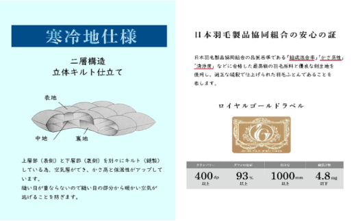 - [№5882-0401]国産羽毛ふとん ハンガリー産ロイヤルホワイトダウン93%(ベネチア)