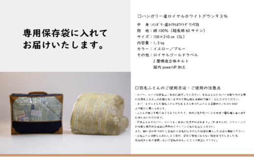 サイズ:150×210cm 重量:1.3kg 側生地:綿100%(超長綿60サテン) 中身:ハンガリー産ロイヤルホワイトダウン93%(ダウンパワー400dp以上) 2層式キルト仕立て 日本製 |