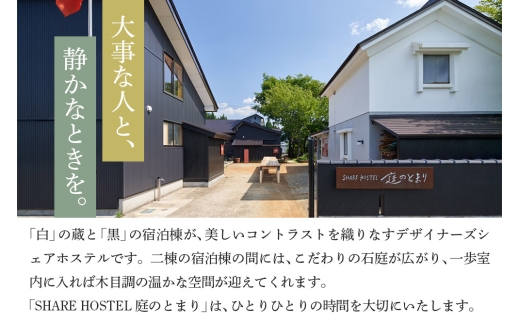 「SHARE HOSTEL 庭のとまり」はひとりひとりの時間を大切にいたします。