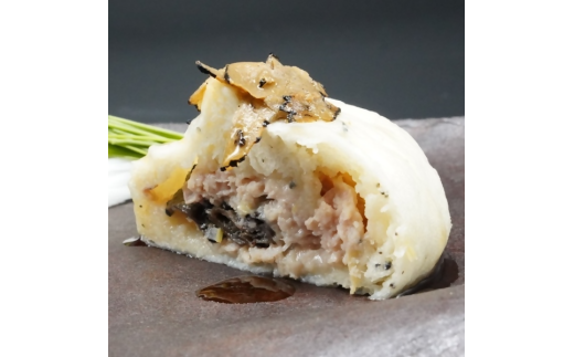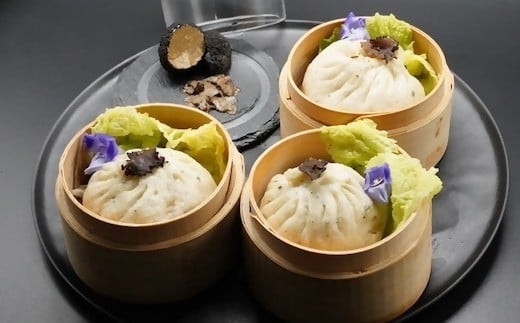 香りの頂点を目指し、最適なトリュフ を厳選。群馬県産小麦「黄金鶴」の高吸水・もっちり生地に、星野が磨いた小籠包の澄んだスープの理(ことわり)を取り入れ、ひと口目に立ち上がる香りと、噛み進めて広がる余韻を設計。餡には地元の完全無投薬「えばらハーブ豚」を使用し、雑味のない旨みでトリュフを引き立てます。