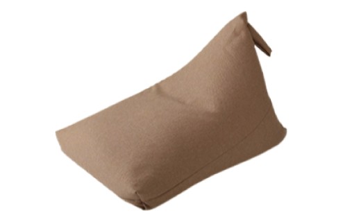 背もたれにもなる三角型のビーズクッション。中身がビーズで軽く、取手付きなので持ち運びが楽。生地に撥水加工ありでお手入れも簡単。