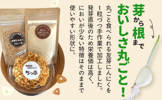 にんにくフレーク にんにくチップ にんにくパウダー にんにく 友芽にんにく 無添加 無着色 ガーリック スライス チップ パウダー 調味料 炒め物 福岡県 福岡 九州 グルメ お取り寄せ メール便(ポスト投函)