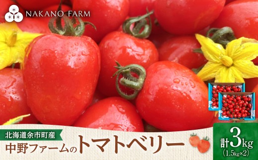 【先行予約7月上旬発送】余市町 中野ファーム トマトベリー 3kg ハート型フルーツミニトマト 甘くて完熟 お弁当に最適 先行予約 甘いトマト 完熟 サラダ お弁当 おやつ 彩り かわいい