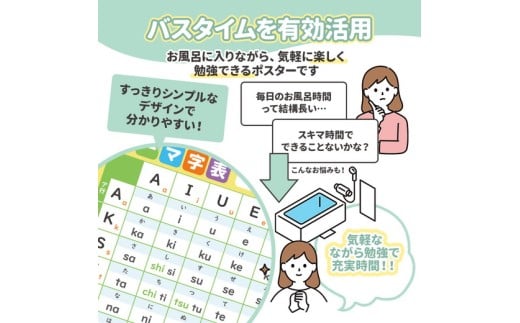 お風呂でローマ字を覚えよう!お風呂に貼ってローマ字を学習できるマグネット製ポスターです。
