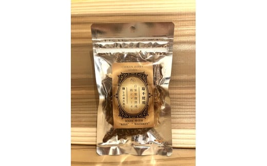 陸前高田市のブランド米、”たかたのゆめ”を使用して玄米麴及び黒麴を製造し、その麹とウイスキーのみで味付けしたチキンジャーキーです。
