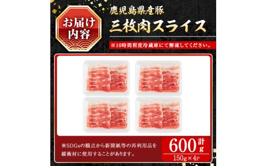 鹿児島県産豚 三枚肉スライス しゃぶしゃぶ向け (600g) 豚肉 バラ スライス【小迫ストアー】A859