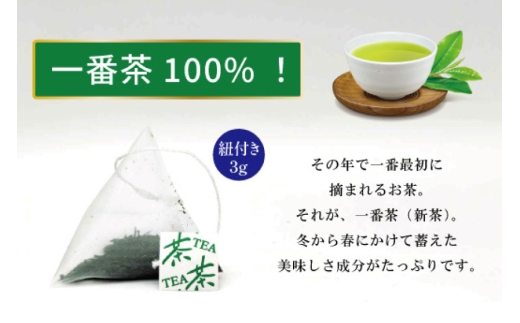 一番美味しい一番茶(新茶)を100%使用した、「手軽さ」と「贅沢な味わい」を両立した紐付きティーバッグです。