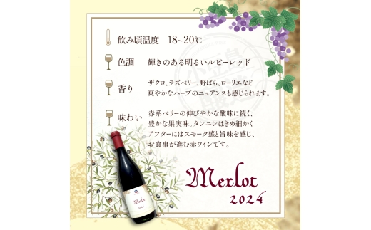 2024年のメルローは、幅広いお食事に寄り添うフードフレンドリーなミディアムボディの赤ワインです。