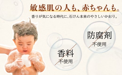 肌自体のバリア機能を落とさず、洗い上がりがしっとり!防腐剤や香料など、余計なものは一切入れていません。