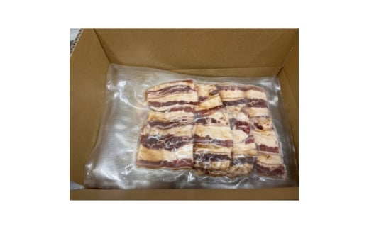 そのタレに牛バラを漬け込み真空冷凍しております。