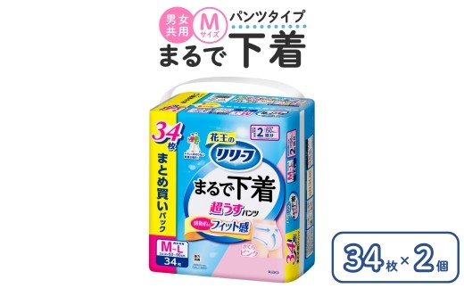 リリーフ パンツタイプ まるで下着2回分 M 34枚入り×2個 ピンク