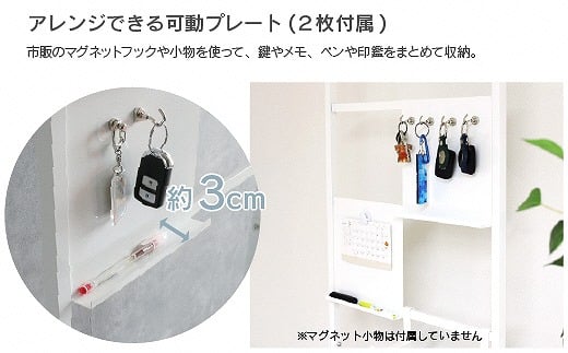 【アレンジできる可動プレート】市販マグネット小物でキーホルダー、メモ、カレンダーなどが貼れて、認め印やボールペンもおけます。