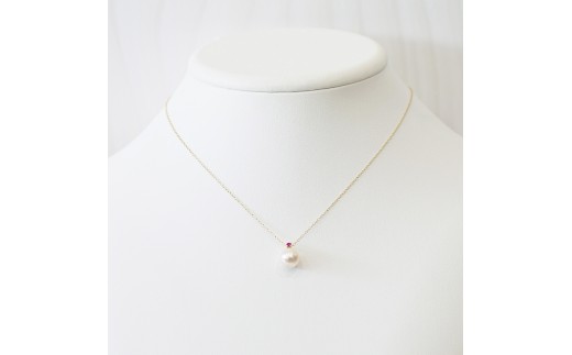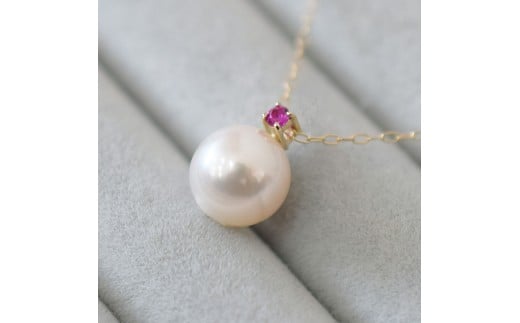 S085-553_あこや真珠 ペンダント ネックレス K10 8mm - 8.5mm 天草 熊本 ホワイトピンク 誕生石 7月 ルビー 半貴石 本真珠