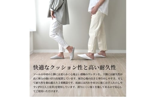 ナチュラルなカラーリングとシンプルで美しいフォルムが、どんなライフスタイルにもそっと馴染みます。 毎日のリラックスタイムに寄り添う一足です。