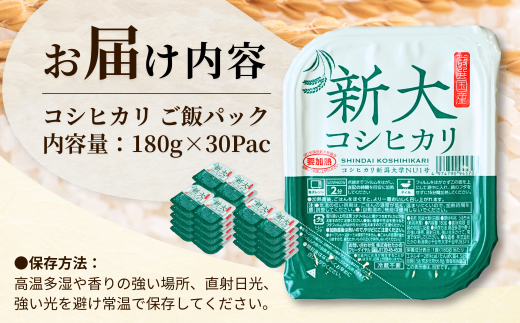 - 新大コシヒカリ パックご飯 180g×30個 たかの | 新潟県産 コシヒカリ お米 米 こしひかり パックごはん パックライス 小千谷市栽培 開発20年 新潟大学【0002-0429SV03-01】