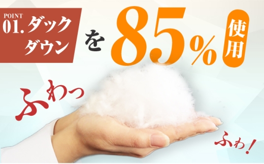 吸湿性・放湿性に優れた羽毛の特性を活かし、蒸れにくく、軽量でありながらも暖かくお使いいただけるのが特徴です。