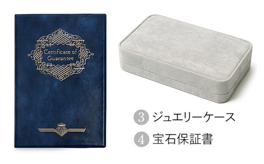 「宝石保証書」と「ジュエリーケース」をお付けします。大切な方へのプレゼントにもおすすめです。