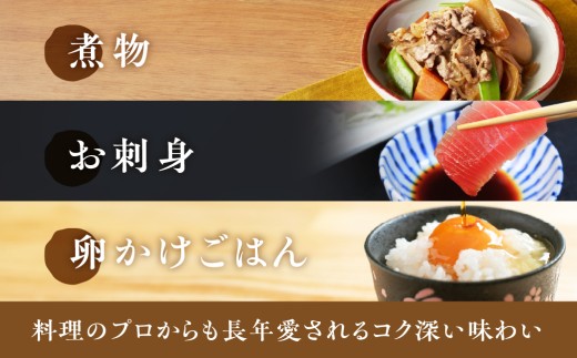 たまり醤油ならではの濃厚な旨みが、素材の味を引き立て、お刺身や煮物、照り焼き、鍋物など幅広い料理に活躍します。