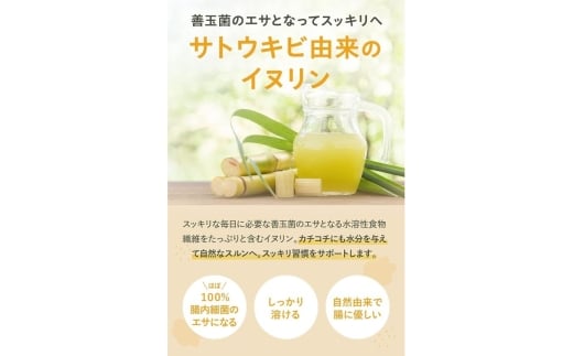お子さまのいつもの食事や飲み物に混ぜるだけで、とても簡単におなかの健康をサポートします。無味無臭だから食事や飲み物の味の邪魔をしません。 善玉菌のエサとなる水溶性食物繊維が豊富なサトウキビ由来のイヌリンでスッキリ習慣を叶えます。
