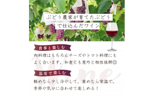 山梨市八幡地区で収穫したメルロ種と樽と壜で熟成させ、ミディアムに美味しく仕上げました。