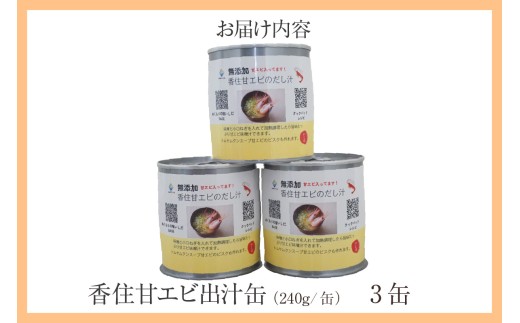 【香住甘エビ 出汁缶 240g×3缶 常温】名産品 お土産 出汁 甘えび あまえび 国産 濃厚 無添加 海鮮 スープ 雑炊 料理 ギフト 自宅用 ふるさと納税 おすすめ 返礼品 兵庫県 香美町 香住 民宿いしだ 48-16