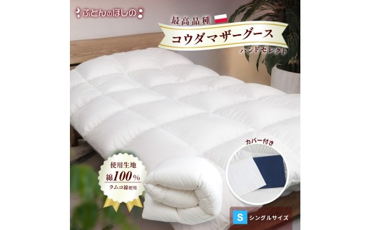 【カバー付き ホワイト】羽毛ふとん ポーランドコウダマザーグースハンドセレクト シングル | 寝具 布団 ふとん 羽毛布団 羽毛 綿 綿生地 ダックダウン ダウン ポーランド産 ポーランドダックダウン 手作り布団 日本製布団 日本製 手作り ふかふか布団 職人仕立て 軽い シングルロング 群馬県 前橋市