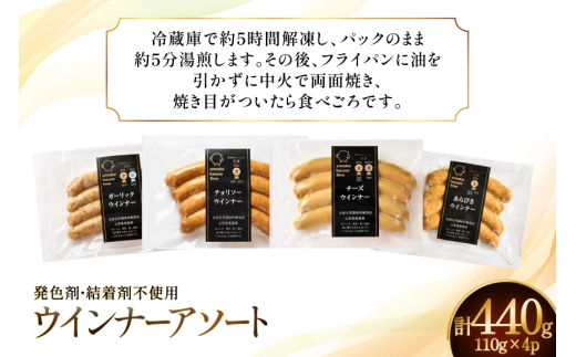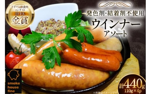 - ウインナー IFFA金賞受賞 ウインナーアソート 110g 4種 計440g [ファイン 山形県 高畠町 tk06ays750038] 無塩せき ウィンナー ウインナー ソーセージ 豚 豚肉 肉 スモーク 燻製