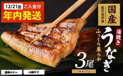 【2025年12月21日までのご入金で年内発送】【鹿児島県産】うなぎ蒲焼じっくり焼き約125g×3尾 化粧箱入り(大新/016-1900) 鰻 ウナギ 蒲焼 国産 丑の日 うな重 無頭 ギフト プレゼント 贈り物 贈答 惣菜 総菜 小分け レンジ 簡単 蒲焼き 冷凍 鹿児島県産