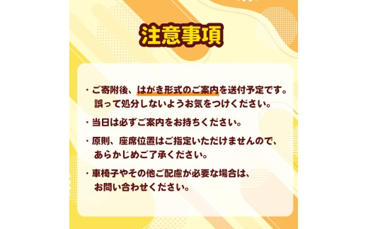 ・お子さまのチケットについては、未就学児までは膝の上でご覧いただけるためチケットは不要です。小学生以上の場合はチケットが必要となります。