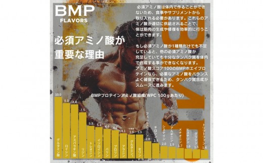BMPプロテインは世界有数の大手プロテインメーカーのWPC(ホエイプロテインコンセントレート)を100%使用。