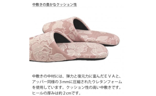 エレガントなレースの模様が存在感のあるソフトスリッパです。