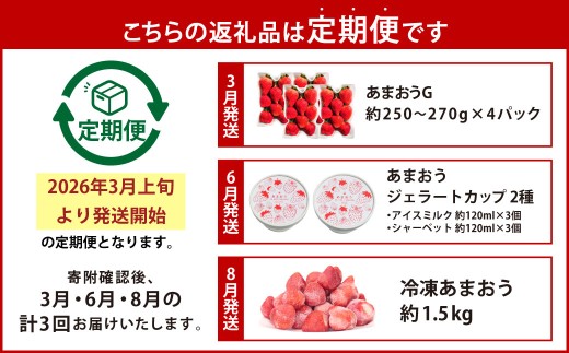 - 【予約受付・3回定期便】 あまおう満喫セット 【2026年3月上旬~8月発送予定】 (フレッシュあまおう / 冷凍あまおう / あまおうジェラート) 苺 イチゴ いちご あまおう ジェラート フルーツ 果物 くだもの セット お取り寄せ ギフト プレゼント おすすめ 定期便 国産 冷凍