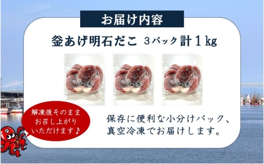 - 【明石産】ほんまにうまい!釜あげ明石だこ3尾1kg 前浜限定 鮮度抜群 産地直送 真空冷凍 冷凍 小分け 兵庫 明石林崎漁港 本場の味 老舗 海鮮【全国発送】