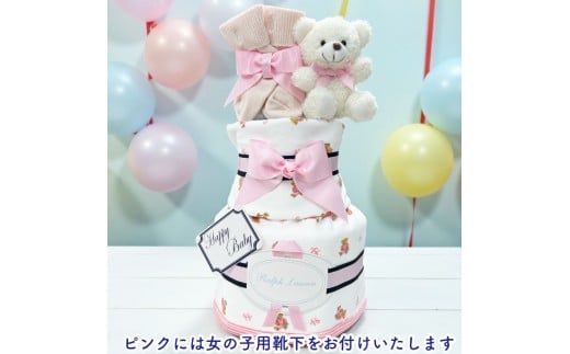 ラルフローレンのベビーブランケットをお付けしたおむつケーキです。