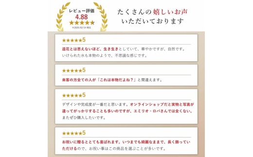 一般的な造花とはかけ離れたクオリティーで目にした多くの人々が生花と見間違います。