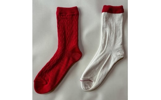 - <ezu>ひえとりくつした 薄手/レッド◆シルク×コットンの二重構造靴下◆ジャガード編み【1650075】