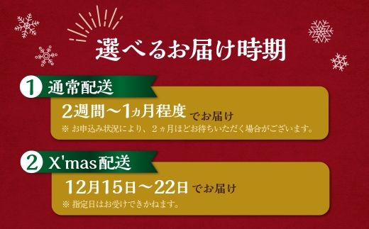 Xmas配送:12月15日~22日にお届け ※指定日はお受けできかねます。 |