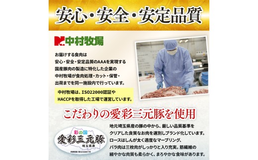 埼玉県産の優良ブランド認定豚【愛彩三元豚】使用!!