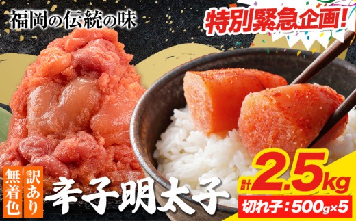 ☆緊急特別規格☆明太子 訳あり 大容量 辛子明太子 めんたいこ 2.5kg 切れ子 小分け 《1-5営業日以内に出荷予定(土日祝除く)》 mentaiko ほぐし 切子 福岡特産 明太子 1袋 各500g 福岡県 鞍手町