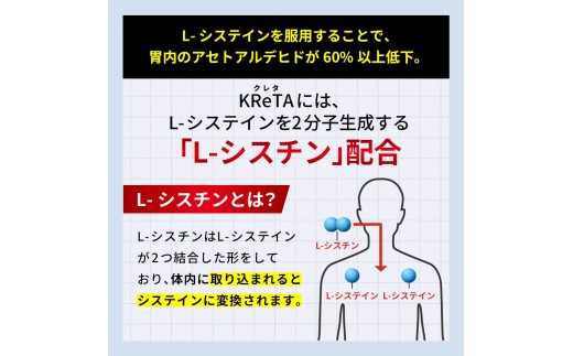 「鋼の肝臓 KReTA(クレタ)」の主要成分であるL-シスチン(アミノ酸)は、そのアルコールやアセトアルデヒドを直接分解する働きがあります。