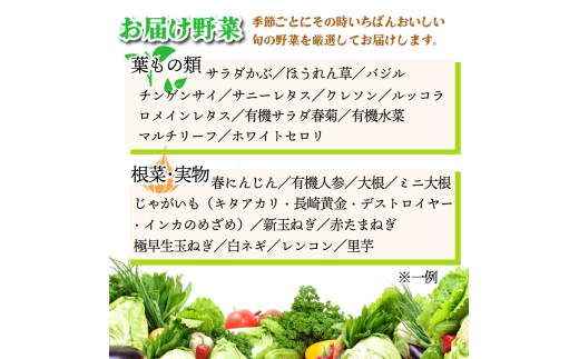 箱の中には、その時季にしか出会えない旬野菜を中心に、料理に使いやすい定番野菜を組み合わせてお届け。