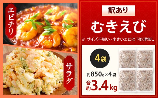 - 【訳あり】 むきえび 約850g×4袋 計約3.4kg むきエビ むき海老 えび エビ 海老 海鮮 大容量 冷凍 福岡県 北九州市