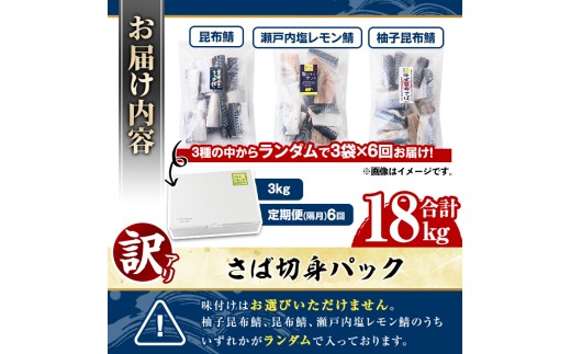 <定期便(隔月)・全6回>訳あり・傷あり ご家庭用さば切身パック(合計18kg) 大容量 サバ 鯖 海産物 海鮮 おかず 惣菜 焼き魚 切り身 ジップロック チャック付き袋 小分け 簡単調理 定期便【グローバルフーズ】akn061-37