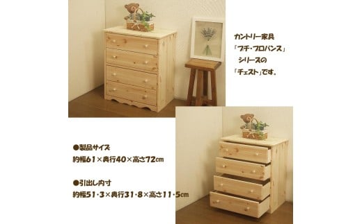 ハンドメイド パイン材 カントリー家具 60幅チェスト ナチュラル色 カントリー調 完成品 引き出し 収納 たんす 箪笥 おしゃれ アメリカン 福岡県 筑後市