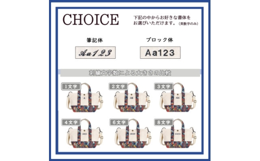 字体は筆記体かブロック体がお選びいただけます。(英数字のみ)