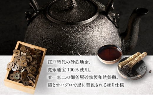 - オーダーメイド【南部鉄器】古銭砂鉄鉄瓶(こせんさてつてつびん) 塗り仕様 仁左衛門 鉄瓶 やかん 急須 伝統工芸品 最高級品 お祝い プレゼント 観賞用 岩手県 盛岡市 御釜屋 砂鉄製 鉄分 健康増進 鉄分摂取 お茶 美味しい 直火OK 錆びにくい 大糸目文姥口平丸形