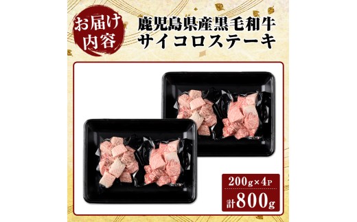 - K-314-C 鹿児島県産黒毛和牛<A5等級>サイコロステーキ(計800g・200g×4P)【ビーフ倉薗】霧島市 牛肉 ステーキ ステーキ肉 国産 鹿児島県産 黒毛和牛 肉 精肉 牛 小分け
