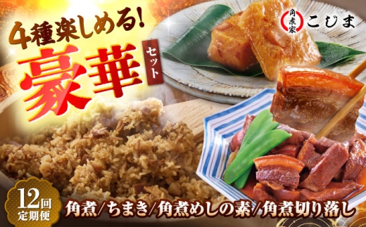 - 【12回定期便】【角煮バラエティーセット】角煮3個&ちまき5個&角煮めしの素1個&角煮切り落し1個 五島市/角煮家こじま [PGX080]