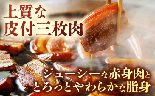 秘伝のたれを加えじっくり煮ていきながら、その間も丹念に灰汁を取り続け、肉の臭みを感じない良質な角煮に仕上げます。 その後一晩寝かせ味を染み込ませると、とろっとやわらかな脂身、もっちりとした皮、ほろほろとほぐれやすくなりつつもジューシーな赤身肉の最高のバランスとなった角煮が出来上がります。